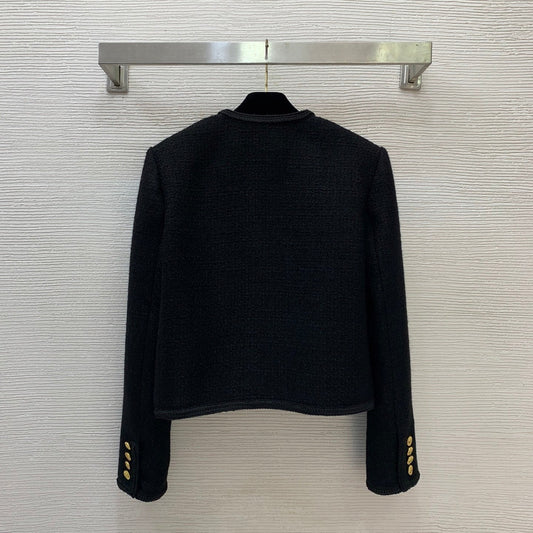 Black Round-Neck Short Jacket Gold Buttons