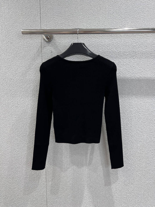 Slim Fit Wool Knit Cardigan Black Crew Neck Cropped