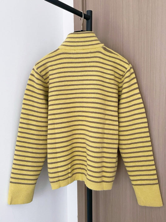 Striped Tricolor Cardigan Logo Embellished Stylish