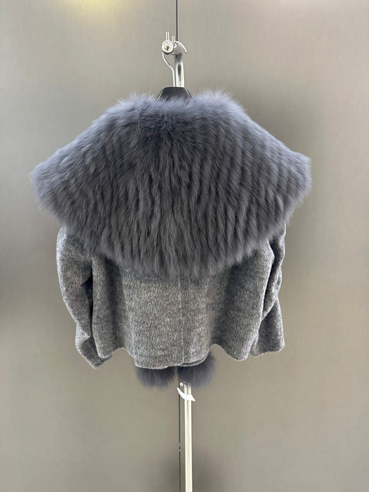 Elegant Wool Coat with Oversized Fox Fur Collar