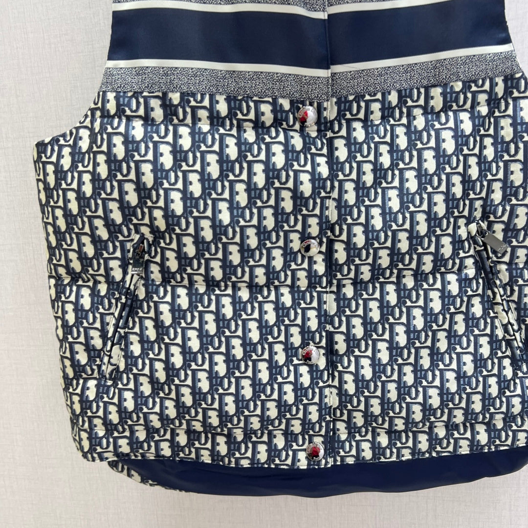 Discover the D 2025 Fall/Winter Alps Limited Edition Monogram Down Vest, crafted with signature jacquard monogram fabric for an elevated alpine look. This premium vest features a practical zip pocket, logo detail on the back, and secure front snap buttons. Filled with 90% high-quality goose down, it delivers exceptional warmth without compromising style perfect for winter layering and luxury streetwear styling.