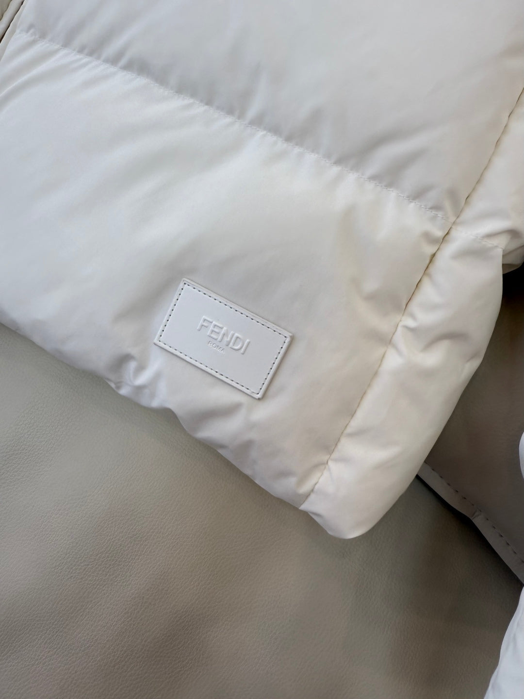 Step into the season with effortless sophistication in this stunning white Fendi-inspired puffer jacket. Crafted with a clean, modern silhouette, it features a plush fur collar that adds a touch of luxury while providing exceptional warmth. The crisp white hue enhances its high-fashion appeal, making it a standout piece for winter wardrobes.