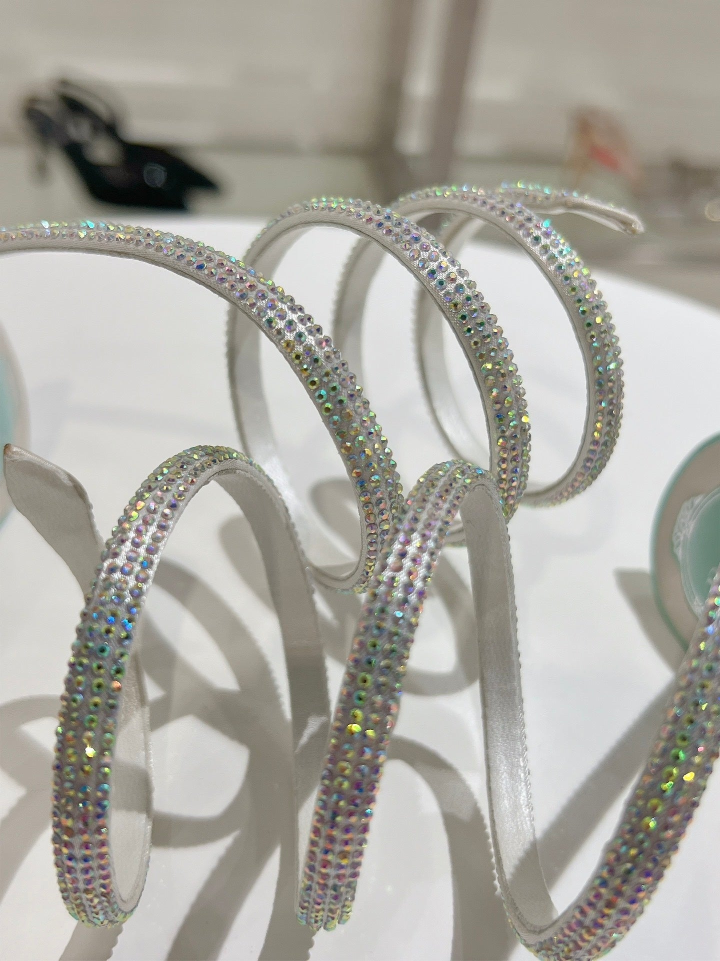 • Luxury Materials: Silk upper with Clio crystal rhinestone embellishments.