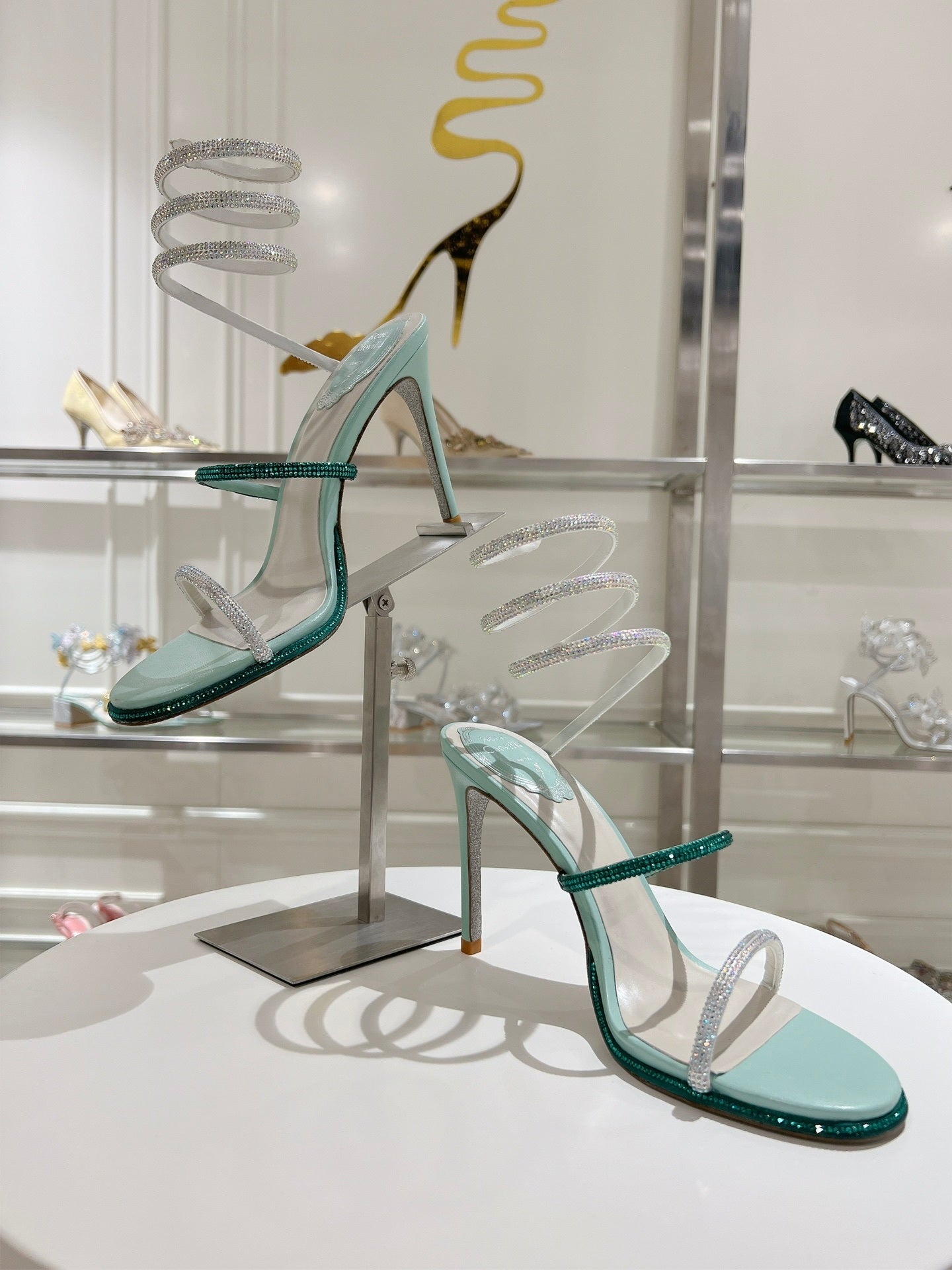 Elevate your elegance with the W204 Top-Tier Supreme Edition Rᴇɴᴇ Cᴀᴏᴠɪʟʟᴀ Stiletto Sandals, part of the coveted 2024 RC Snake-Shaped CLEO Popular Series. These original-design stiletto sandals feature an exquisite combination of silk and Clio crystal rhinestones, creating a sparkling, eye-catching look perfect for any high-fashion occasion. Designed for discerning women, the sandals offer a specific lambskin lining and insole for unparalleled comfort, paired with a genuine leather outsole in matching sparkling silver for luxury from heel to toe.